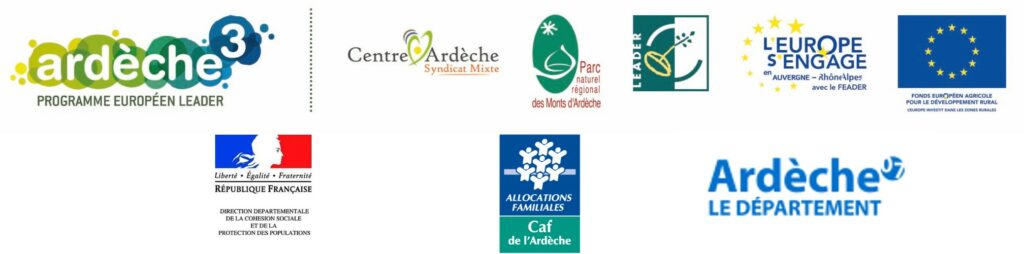 Quelques structures accompagnées : les associations Païolive, Rézonance, l’Arrosoir, le vesseaux-mère, l’EVS de Burzet, Au-Delà du temps, la FRAPNA, le Viel Audon, Ardèche le goût, la CDC Beaume-Drobie, le PNR des Monts d’Ardèche, la Réserve Naturelle des Gorges d’Ardèche, le département de l’Ardèche (Muséal, le Foyer de l’Enfance, etc).